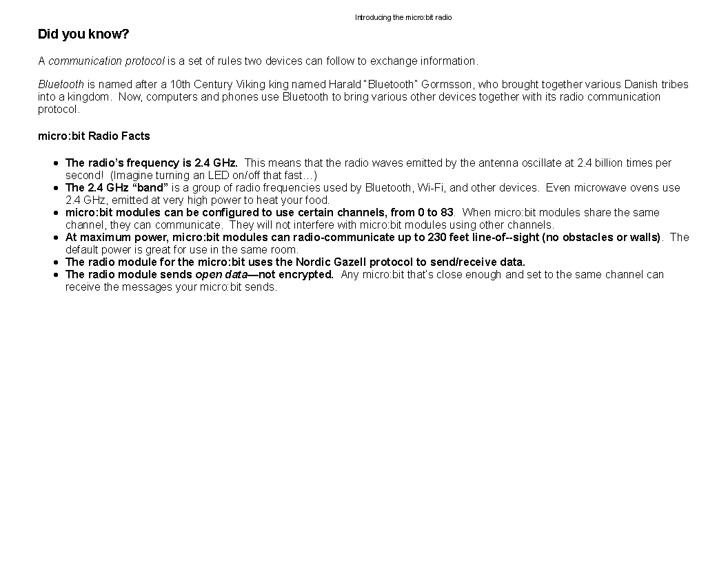 In this lesson, students learn about using the micro bit radio.