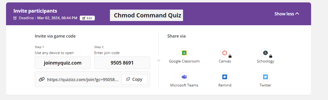 Practice this Quizizz about Linux permissions. Click here.