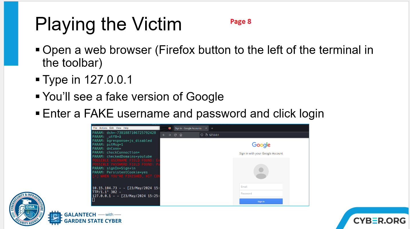 Lab 2.1.1 - Social Engineering Toolkit read this See image below: When you get to page 8, Screen print what you have. Your file name is PX_lastname_Threat.png Turn it in to google classroom.