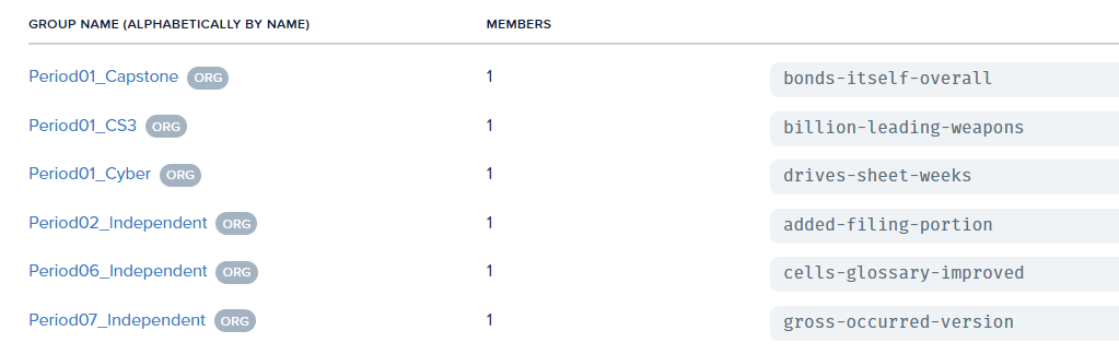 Look at the different group listed below.