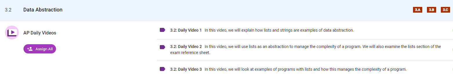 3.2: Daily Video 2 In this video, we will use lists as an abstraction to manage the complexity of a program. We will also examine the lists section of the exam reference sheet.