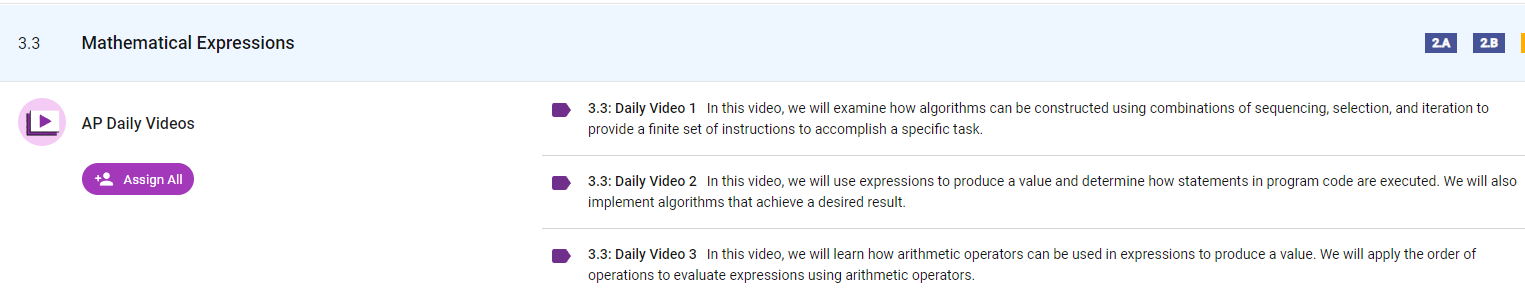 3.3: Daily Video 2 In this video, we will use expressions to produce a value and determine how statements in program code are executed. We will also implement algorithms that achieve a desired result.