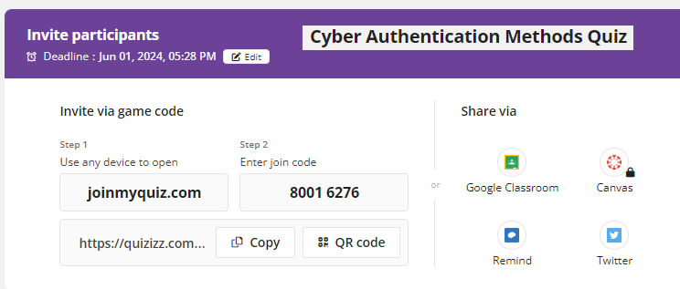 Name the the google document "Lastname - 2.4.1 Authentication Methods Quiz"