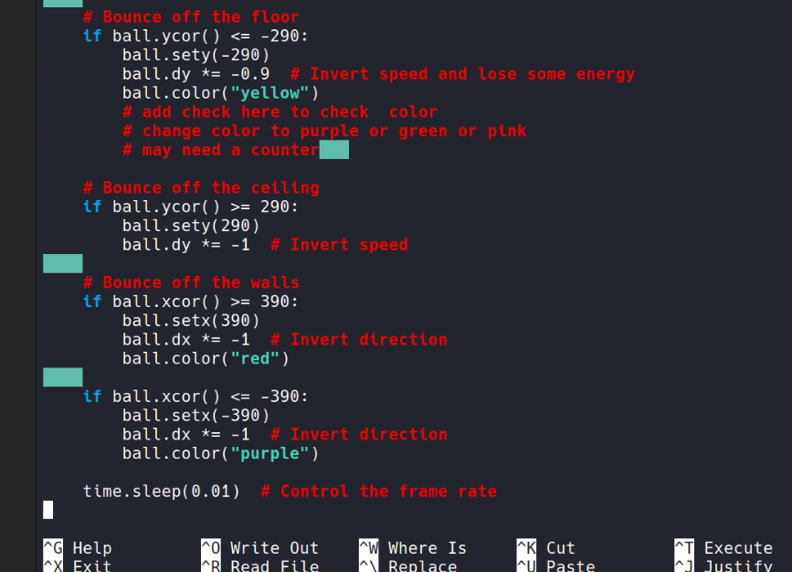 -You need to change to a different color every time the ball hit the floor. (10 Points)