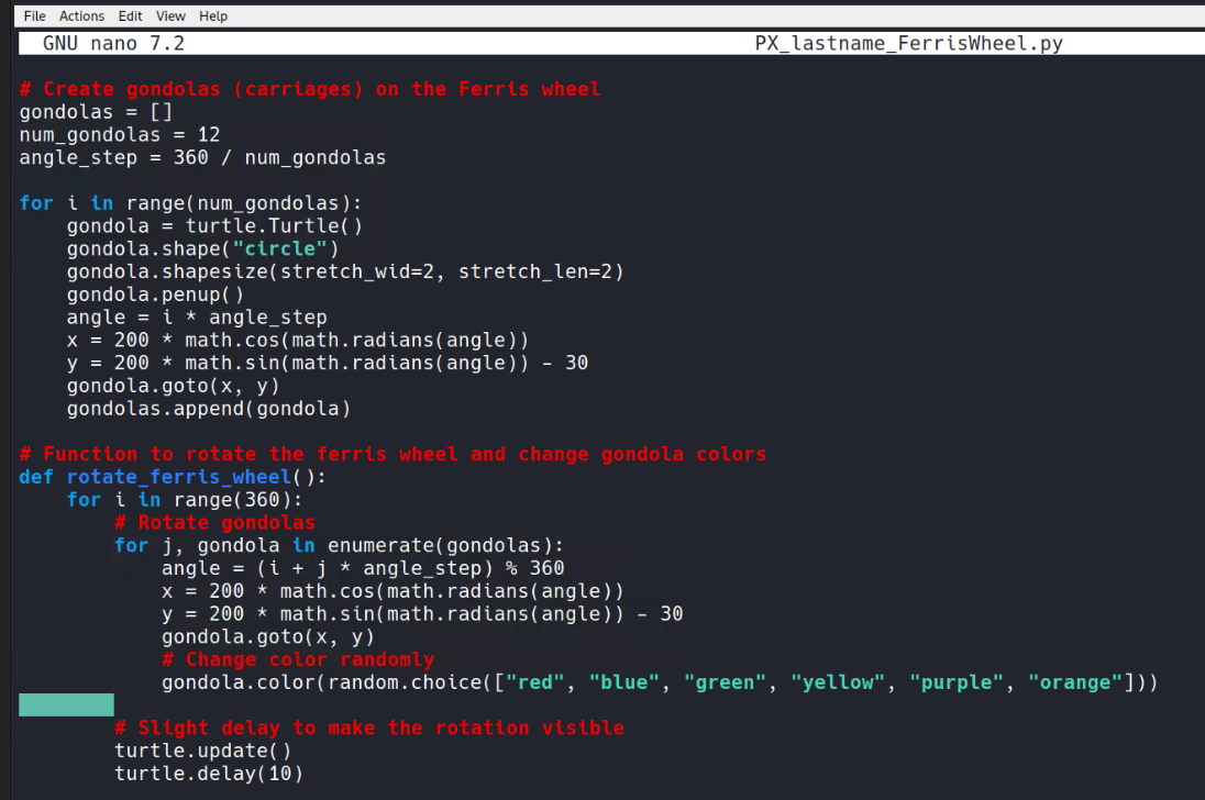 PX_Ferris_lastname.mp4 (Video of python program running)